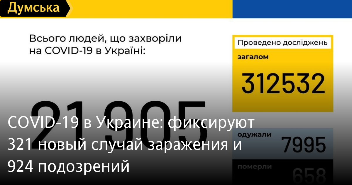 По состоянию на 9:00 27 мая в Украине 21905 лабораторно подтвержденных случаев COVID-19, из них 658 летальных, 7995 пациентов выздоровели.