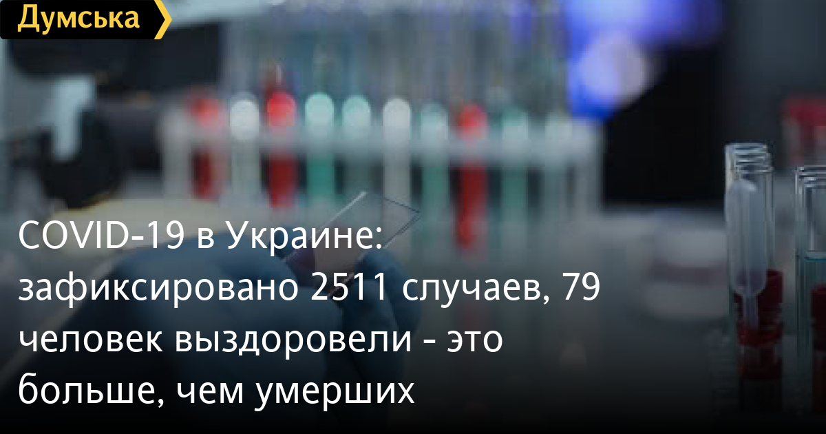 COVID-19 в Украине: зафиксировано 2511 случаев, 79 человек выздоровели — это больше, чем умершихПо состоянию на утро 11 апреля в Украине зафиксировали 2511 лабораторно подтвержденных случаев COVID-19. По данным ЦОС, количество тех, кто выздоровел (79 пациентов) превысило количество летальных случаев (73 пациента). За сутки было зафиксировано 308 новых случаев. Заболевания по областям: Винницкая область — 151 случай; Волынская область — 52 случая; Днепропетровская область — 55 случаев; Донецкая область — 11 случаев; Житомирская область — 74 случая; Закарпатская область — 60 случаев; Запорожская область — 64 случая; Ивано-Франковская область — 274 случая; Кировоградская область — 106 случаев; Киев — 396 случаев; Киевская область — 149 случаев; Львовская область — 96 случаев; Луганская область — 3 случая; Одесская область — 51 случай; Полтавская область — 24 случая; Ровенская область — 103 случая; Сумская область — 69 случаев; Тернопольская область — 208 случаев; Харьковская область — 8 случаев; Херсонская область — 28 случаев; Хмельницкая область — 18 случаев; Черновицкая область — 409 случаев; Черкасская область — 93 случая; Черниговская область — 9 случаев. Отметим, в данных МОЗ не включили два случая, которые зафиксировали в Николаевской области — таким образом, в Украине не осталось ни одной области без COVID-19. СМЕРТЬ РОСІЙСЬКИМ ОКУПАНТАМ! Помітили помилку? Виділяйте слова з помилкою та натискайте control-enter Новини по цій темі: 4 березня 2023: "Вакцини-довгожителі", або Як щеплення проти COVID-19 перетворилися в Україні на небезпечний ритуал 27 січня 2023: МОЗ зобов`язали опублікувати договори на закупівлю вакцин проти COVID-19: апеляційний суд задовольнив позов журналіста "Думської" 11 січня 2023: За тиждень в Одесі зафіксовано 159 випадків ковіду 4 січня 2023: За тиждень в Одесі зареєстровано 113 випадків ковіду |