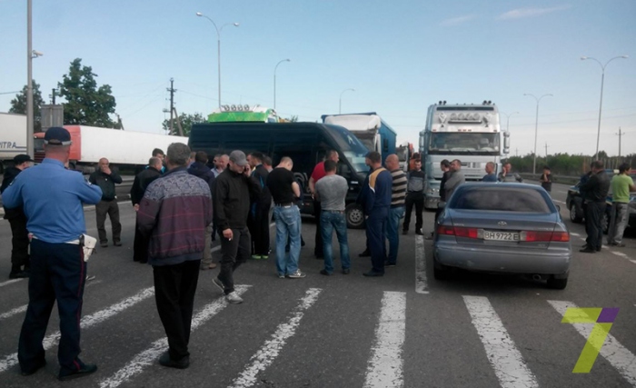 Грузовики перекрыли три полосы в сторону Одессы. Дальнобойщики требуют, чтобы вес, если и контролировали, то одинаково для всех, без коррупции, а также настаивают на том, что за перегруз должны отвечать заказчики, а не исполнители.
