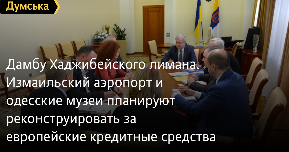 Губернатор Одесской области Сергей Гриневецкий предложил направить средства, выделяемые в рамках работающей с 2015 года «Чрезвычайной кредитной программы по восстановлению Украины» Европейского инвестиционного банка, на реконструкцию дамбы Хаджибейского лимана, Объездной дороги, областной детской больницы, Измаильского аэропорта.