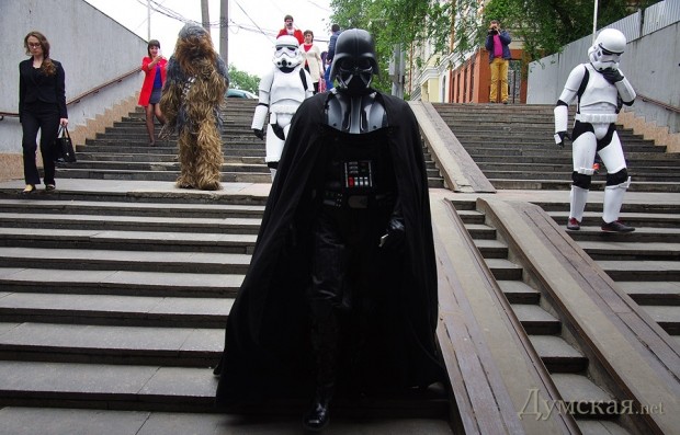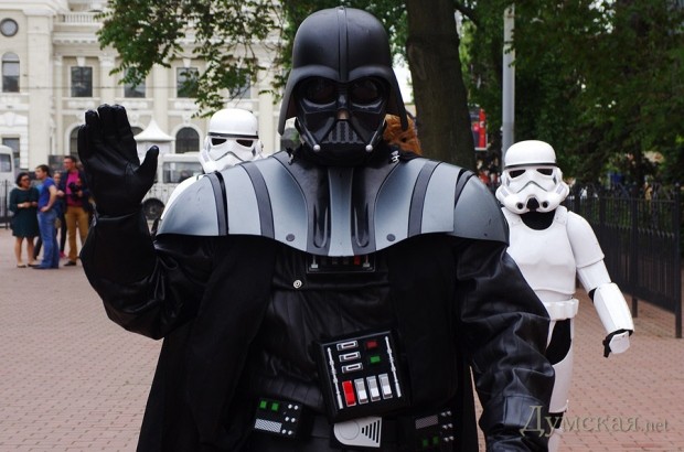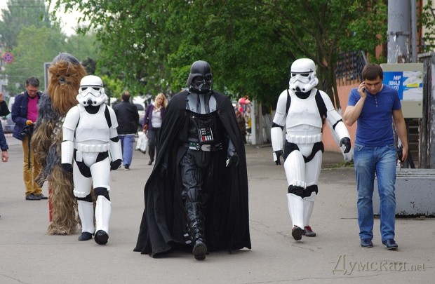 Сегодня кандидат на пост мэра Одессы Дарт Вейдер посетил знаменитый Привоз. Темного лорда сопровождали Чубакка и два имперских штурмовика.
