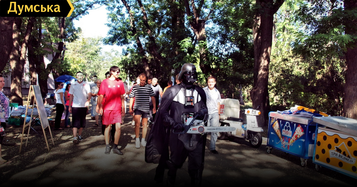 Сегодня утром правая рука императора Палпатина — Тёмный Лорд ситхов Дарт Вейдер появился у незаконных шлагбаумов на парковке у пляжа Ланжерон в Одессе. Там с автомобилистов сдирают по 7 гривен за час, причём наличными, хотя по закону вся оплата должна осуществляться только через паркомат.