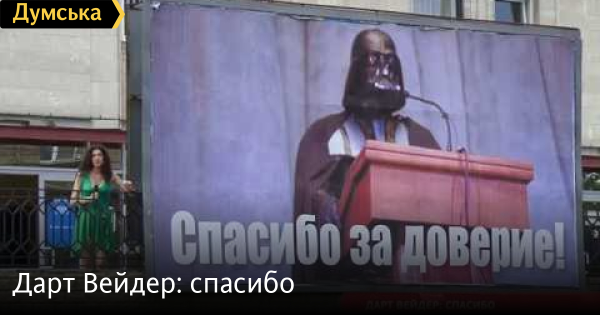 Выборы закончились и о тех, кто хотел стать мэром уже не слышно. Только один кандидат не забыл о своих избирателях. Когда Светлые перестали говорить, Темные не забыли сказать спасибо. Дарт Вейдер поблагодарил своих избирателей за доверие.