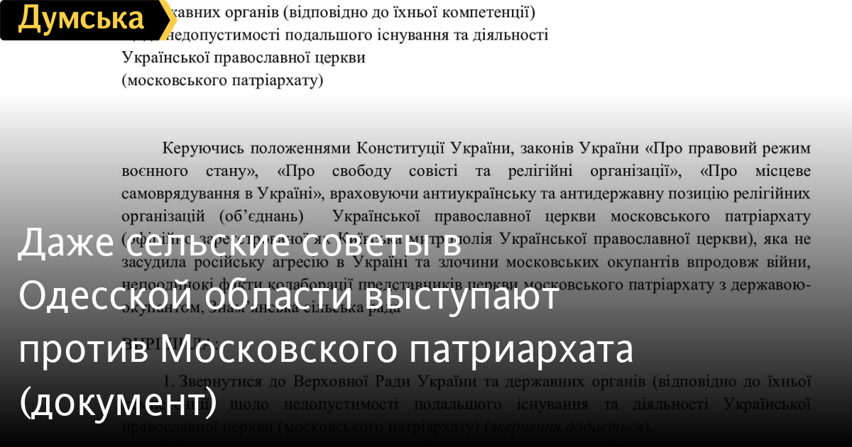 Обращение к Верховной Раде Украины и другим государственным органам о недопущении дальнейшей деятельности Украинской православной церкви (Московского патриархата) принял на внеочередном заседании сессии 16 мая Знаменский сельсовет Березовского района Одесской области.