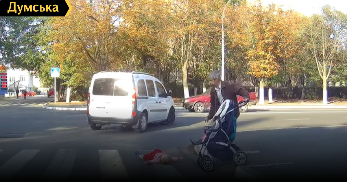 Хм Очередной «любитель» своих детей. Это о чем нужно думать, чтобы, переходя через дорогу, позволить ребенку стоять в коляске непристегнутым? А еще говорят, что чем человек старше-тем он умнее и больше разбирается в воспитании и уходе. А если бы машина не затормозила, как это у нас модно? Это же нерегулируемый пешеходный переход, многие не считают нужным останавливаться.