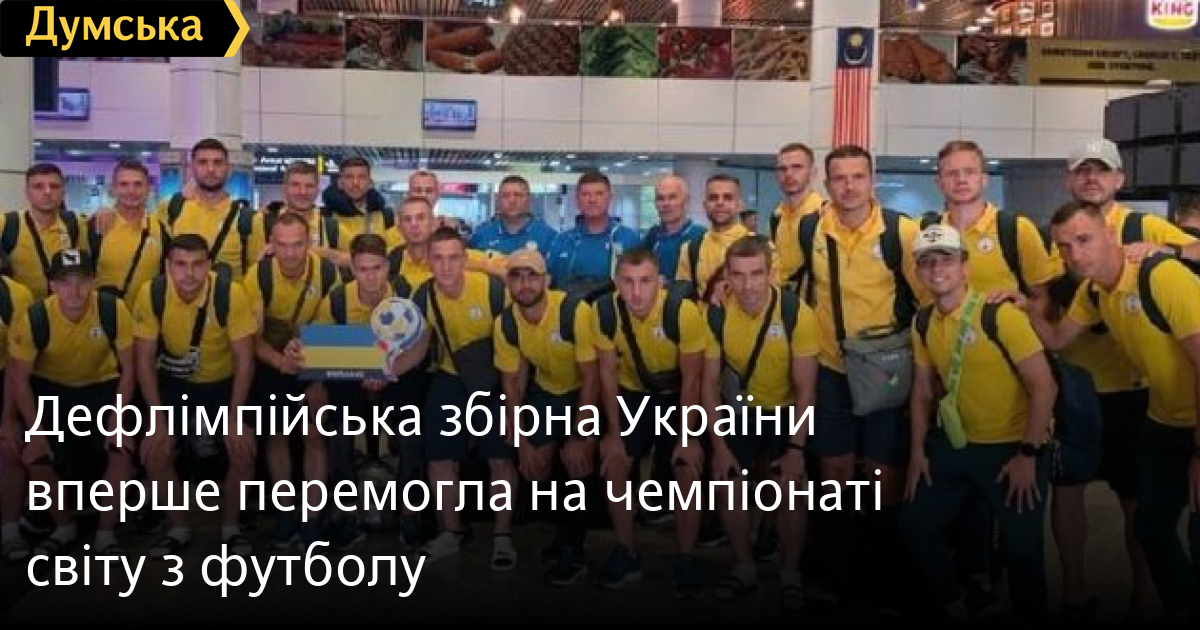 Дефлімпійська збірна України вперше перемогла на чемпіонаті світу з футболуЗбірна України з футболу серед гравців із порушеннями слуху виграла чемпіонат світу, який завершився 7 жовтня в Куала-Лумпурі (Малайзія). Як повідомляє Українська асоціація футболу, у турнірі брали участь команди 19 країн. Наша збірна опинилася в групі В, де здолала представників Таїланду (6:0), зіграла внічию з Сенегалом (2:2) і обійшла Аргентину (5:0). В 1/8 фіналу українські спортсмени обіграли команду Нігерії з рахунком 2:0, а у чвертьфіналі — Ірану (3:0). У півфіналі наші футболісти зіграли зі збірною Сенегела і в основний час зіграли внічию (1:1). Переможця визначили в серії пенальті (8:7). У фінальному поєдинку українці зустрілися з японцями і здобули впевнену перемогу 2:1. Зазначимо, що українська збірна вперше стала чемпіоном світу. У 2012 році наші спортсмени вибороли бронзу. У 2009 і 2022 роках перемагали на Дефлімпійських іграх. Помітили помилку? Виділяйте слова з помилкою та натискайте control-enter |