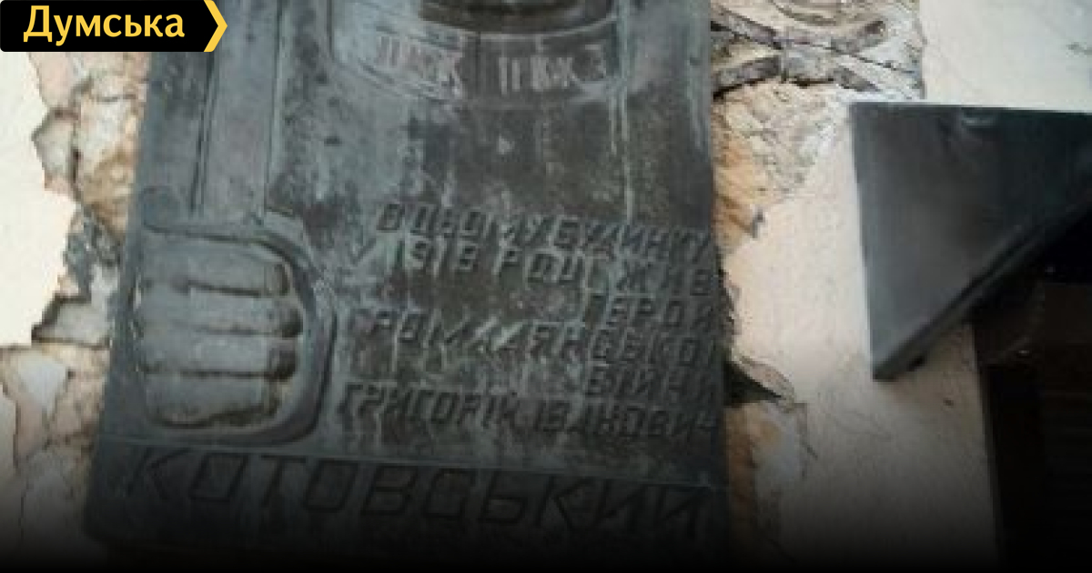 Неизвестные пытаются снять мемориальную доску большевистскому командиру, участнику Гражданской войны Григорию Котовскому, которая висит на стене дома №14 по Соборной площади (угол Спиридоновской).