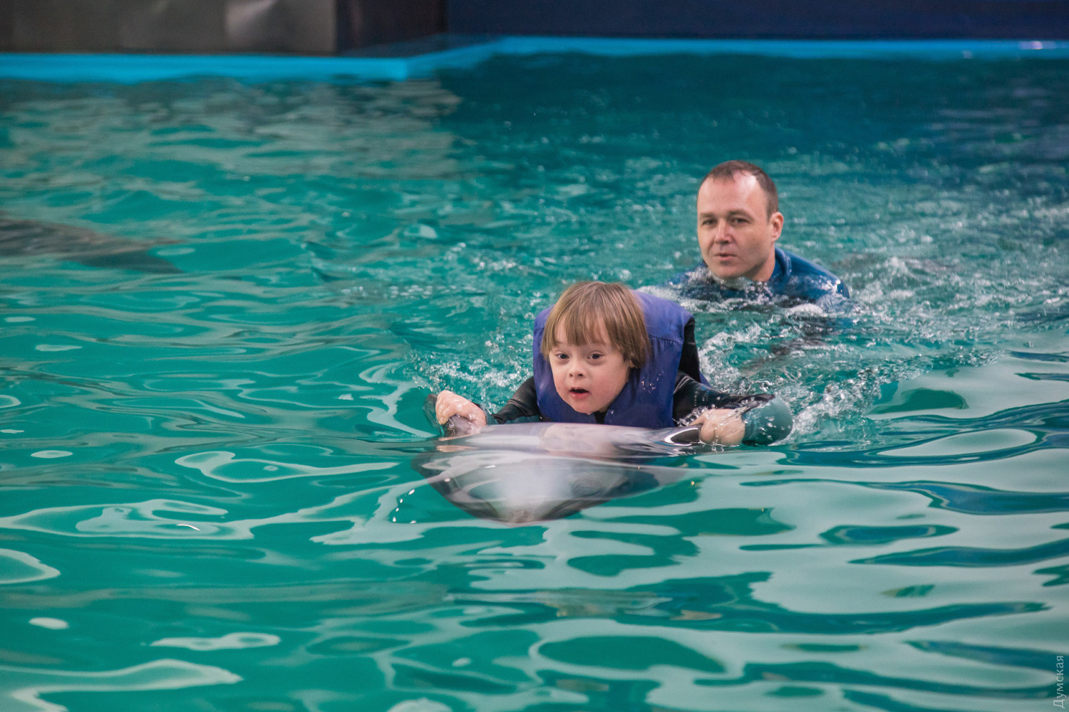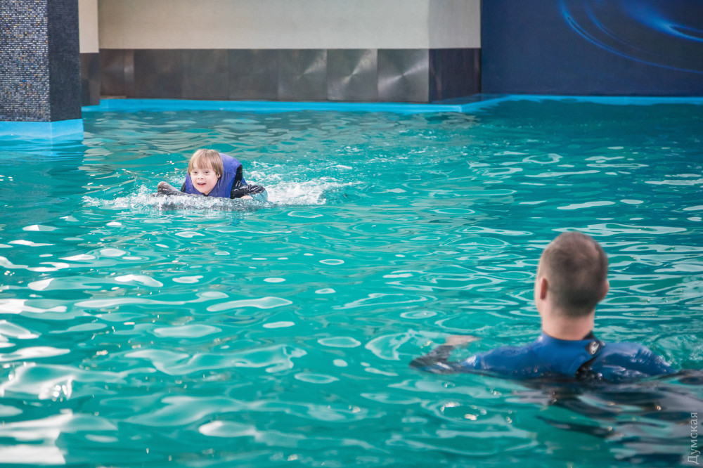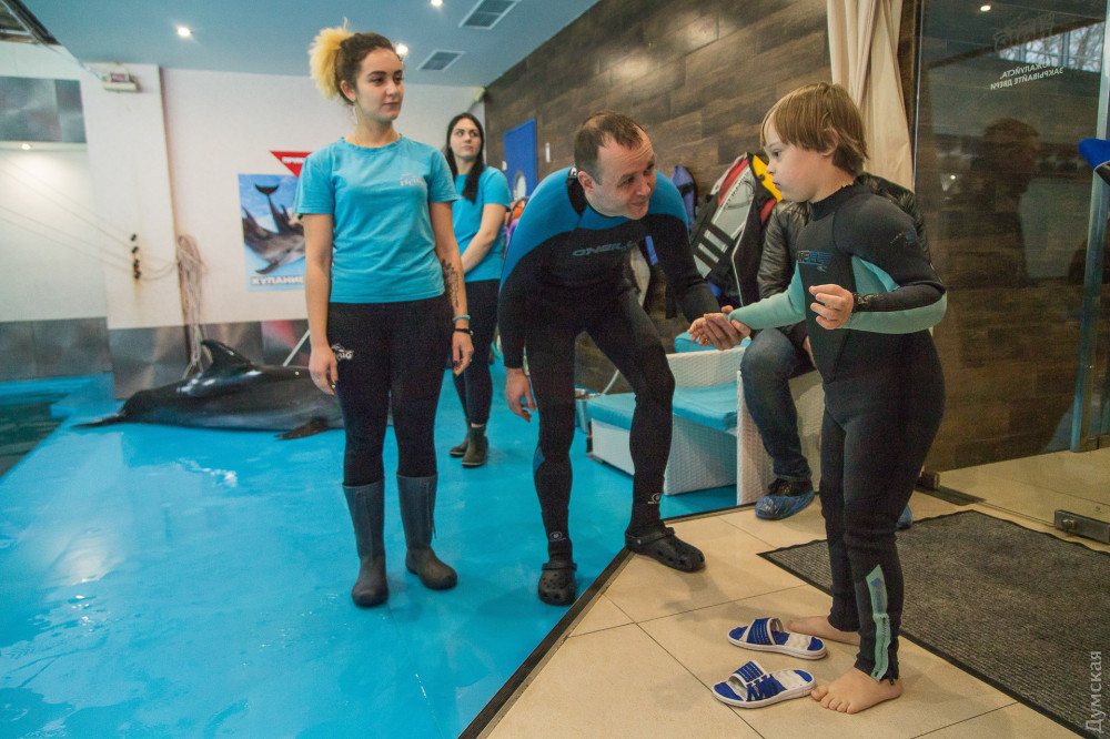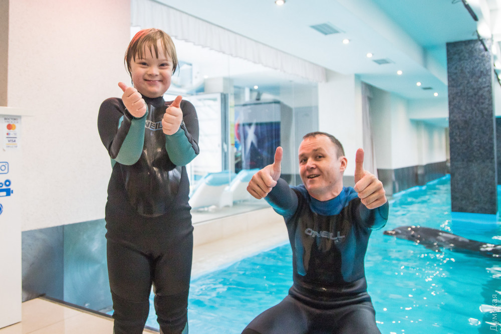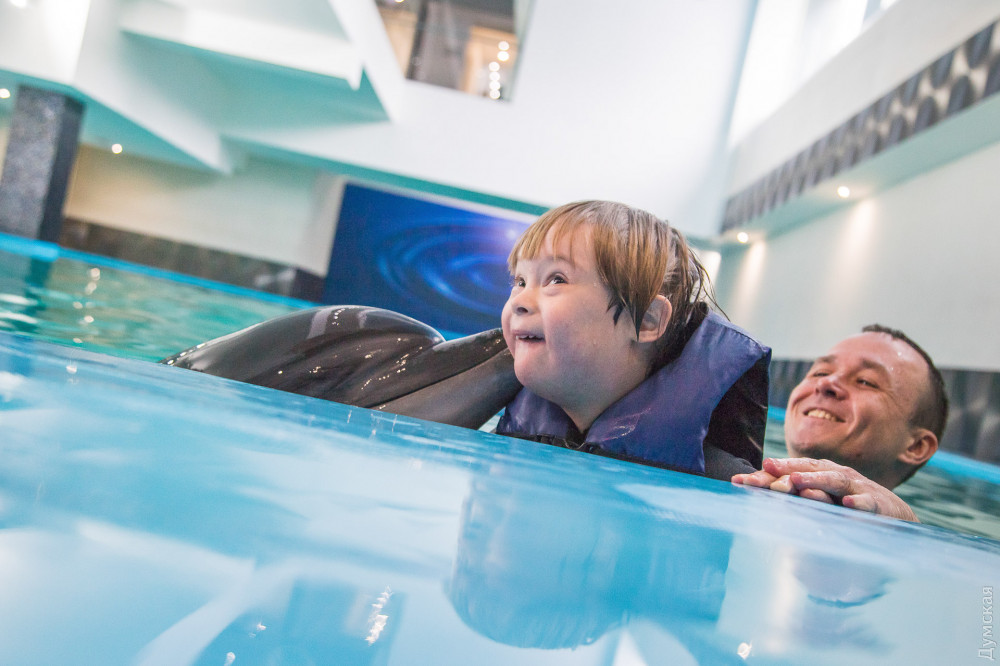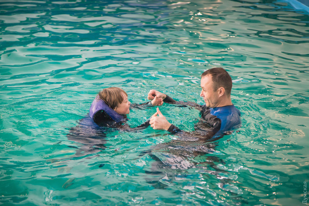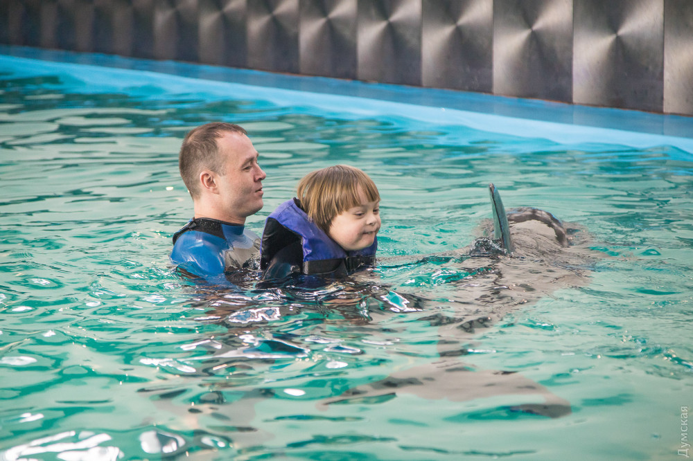 «Подобная терапия — это то, что нам нужно по показаниям, — рассказывает мама Давида Светлана Гончарова. — Сначала мы попробовали лошадок, но Давид их очень испугался. А с дельфином в первый же день подружился и проплыл целый бассейн. Здесь он переборол свой страх и научился плавать, до этого мог только с кругом».