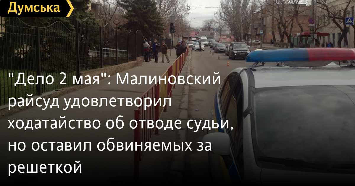 Малиновский районный суд Одессы, рассматривающий дело антимайдановцев, принимавших участие в массовых беспорядках 2 мая, удовлетворил ходатайство стороны защиты об отводе председательствующего судьи Передерко.