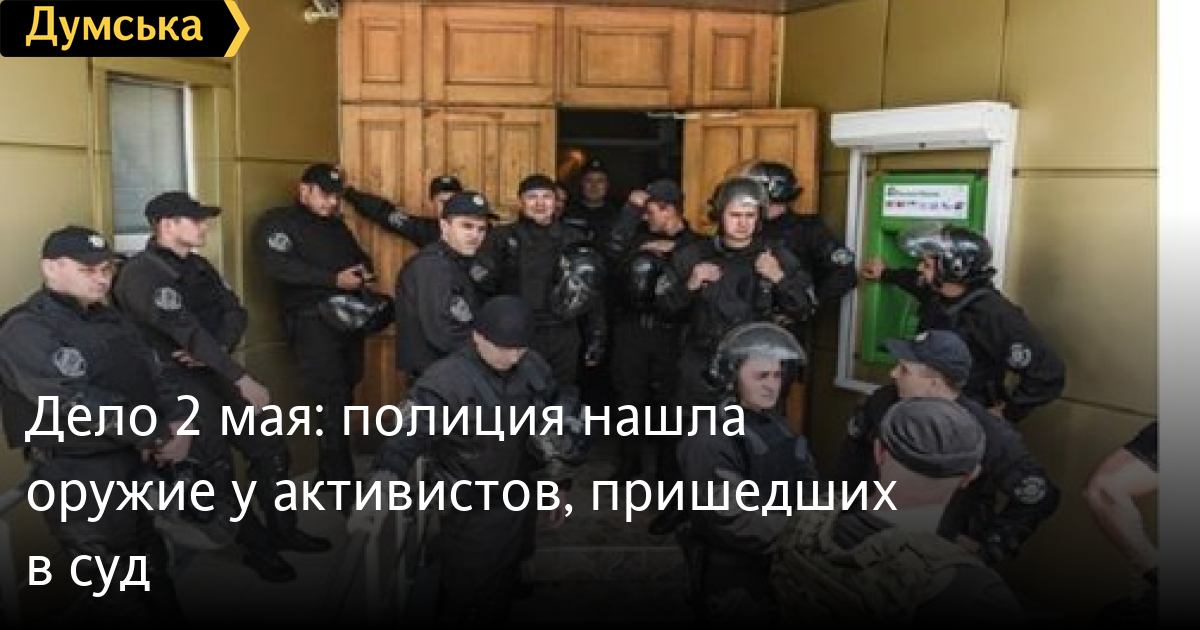 Сотрудники батальона полиции особого назначения нашли оружие у двух активистов, которые пришли в Малиновский районный суд Одессы, где сегодня проходит очередное заседание по «делу 2 мая».