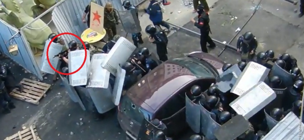 Эти офицеры запечатлены на нескольких фотографиях, сделанных 2 мая в центре Одессы, причем одновременно с пророссийскими участниками событий, которые строили баррикады и применяли оружие против украинских активистов.
