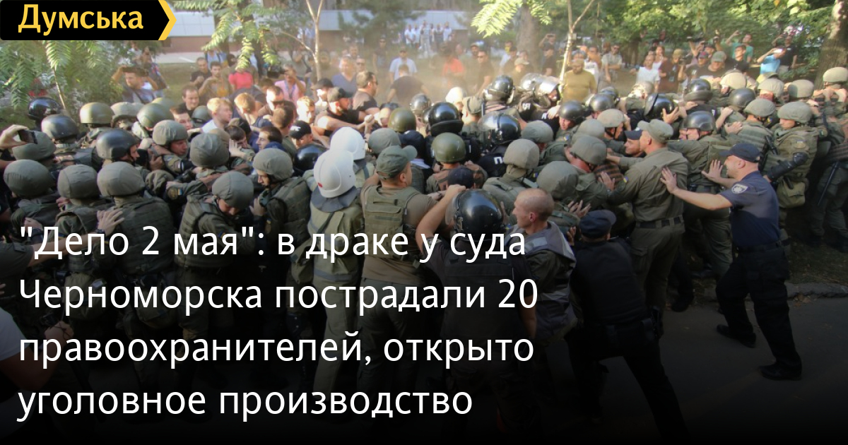 Как минимум два десятка полицейских и национальных гвардейцев получили телесные повреждения разной степени тяжести в сегодняшних столкновениях у городского суда Черноморска, где оглашали оправдательный приговор пророссийским участникам трагических событий 2 мая 2014 года.