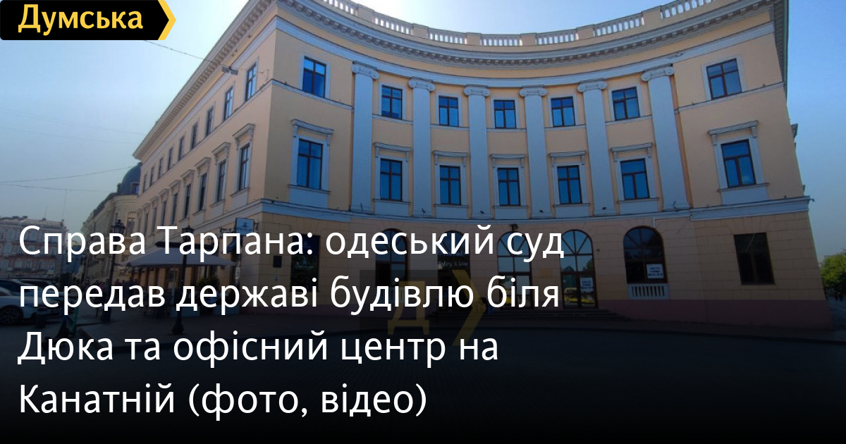 Справа Тарпана: одеський суд передав державі будівлю біля Дюка та офісний центр на Канатній (фото, відео)Дві будівлі в самому центрі міста (в т.ч. напівциркульна біля Дюка), що належать одеському розшукуваному бізнесмену Руслану Тарпану, передали в розпорядження держави. Тепер займатися цими недешевими активами буде Агентство з питань виявлення, розшуку та управління активами, отриманими від корупційних та інших злочинів (АРМА), передає кореспондент «Думської».