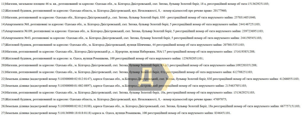 Дело «бриллиантового миграционщика»: арестованы десятки объектов в Одессе и ЗатокеАктивы скандально известного экс-начальника управления миграционного контроля Одесской области Андрея Морару арестовал суд. Как передает корреспондент «Думской», дело также переквалифицировали на тяжелую статью о незаконном обогащении. Ранее Национальное агентство по вопросам предотвращения коррупции нашло дыру в декларации на 83 миллиона гривен. Теперь следствие утверждает, что официальные доходы семьи Морару за последние 24 года не покрывают и десятой доли их имущества. Список арестованного имущества поражает масштабом и географией. В него вошли домовладение на Ромашковой в Одессе стоимостью более 12 млн гривен, целая сеть коммерческих и жилых объектов в курортной Затоке на бульваре Золотой Берег, включая элитные апартаменты и магазины, а также офисные здания и дома в Белгороде-Днестровском. Ранее суд арестовал внедорожник Mercedes-Benz G400D, а также ювелирную коллекцию из белого золота с бриллиантами от Cartier и часы Rolex. У супруги чиновника также нашли криптовалюту на 58 миллионов грн, 100 тыс. евро и 200 тыс. долларов сомнительного происхождения. По новой статье обвинения Морару грозит реальный тюремный срок до 10 лет. Миграционщик уже фигурировал в деле о взятке в 20 тысяч долларов за решение вопроса с депортацией. Согласно материалам дела, совокупный доход чиновника, его жены и матери с 1999 года составил всего около 4 миллионов гривен, в то время как стоимость только официально подтвержденных подозрительных активов оказалась выше на 13 миллионов гривен. По версии ГБР, чтобы скрыть реальное положение дел, Морару использовал классическую схему, записывая имущество на свою мать. Также правоохранители установили, что он лично управлял подконтрольными фирмами «Салвейв» и «Неонол», хранил их печати дома и сам подписывал договоры на поставку электричества в формально офисы мамы.