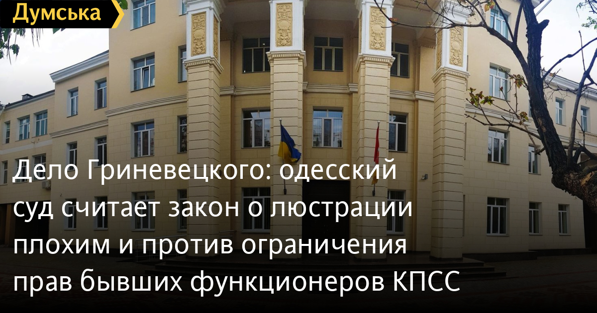 Служитель Фемиды посчитал, что пребывание Гриневецкого на должности первого секретаря Раздельнянского райкома КПСС в 1990-1991 годах не может быть основанием для люстрации.