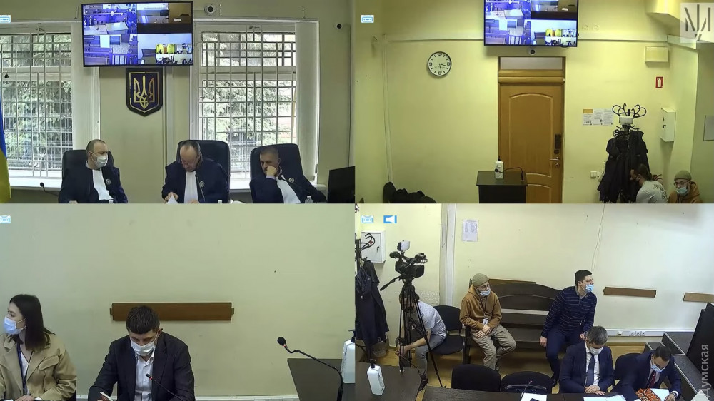 Мэр Труханов присутствовал дистанционно в режиме видеоконференции из Приморского райсуда Одессы.