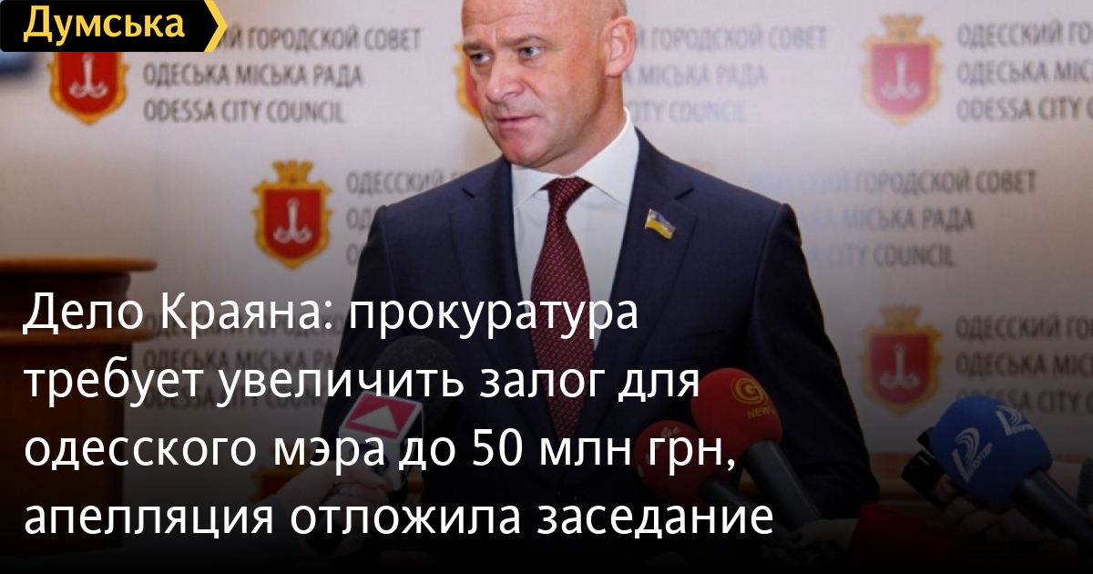 Определение, согласно которому городской голова остается на свободе под залог 13,42 млн грн, обжаловали обе стороны процесса: защита настаивает на максимально мягкой мере пресечения, прокуратура требует увеличить залог до 50 млн грн.