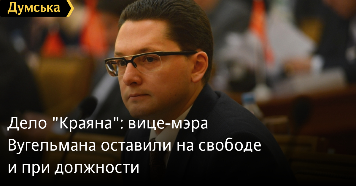 Апелляционный суд города Киева отказался менять меру пресечения заместителю Одесского городского головы Павлу Вугельману и отстранять его от должности. Как сообщили в пресс-службе суда, жалобы прокурора на соответствующие решения Соломенского суда рассмотрели сегодня, 20 марта. Прокурор настаивал на изменении меры пресечения: чтобы чиновника все-таки взяли под стражу. Однако суд оставил Павла Вугельмана на свободе под поручительство двоих народных депутатов — Александра Пресмана и Юрия Мирошниченко. От должности вице-мэра также не отстранили. Напомним, Павел Вугельман подозревается в совершении уголовного преступления, предусмотренного ч. 5 ст. 191 (присвоение, растрата имущества или завладение им путем злоупотребления служебным положением) Уголовного кодекса Украины. По данным следствия, он соучастник аферы с приобретением административного здания бывшего завода «Краян».