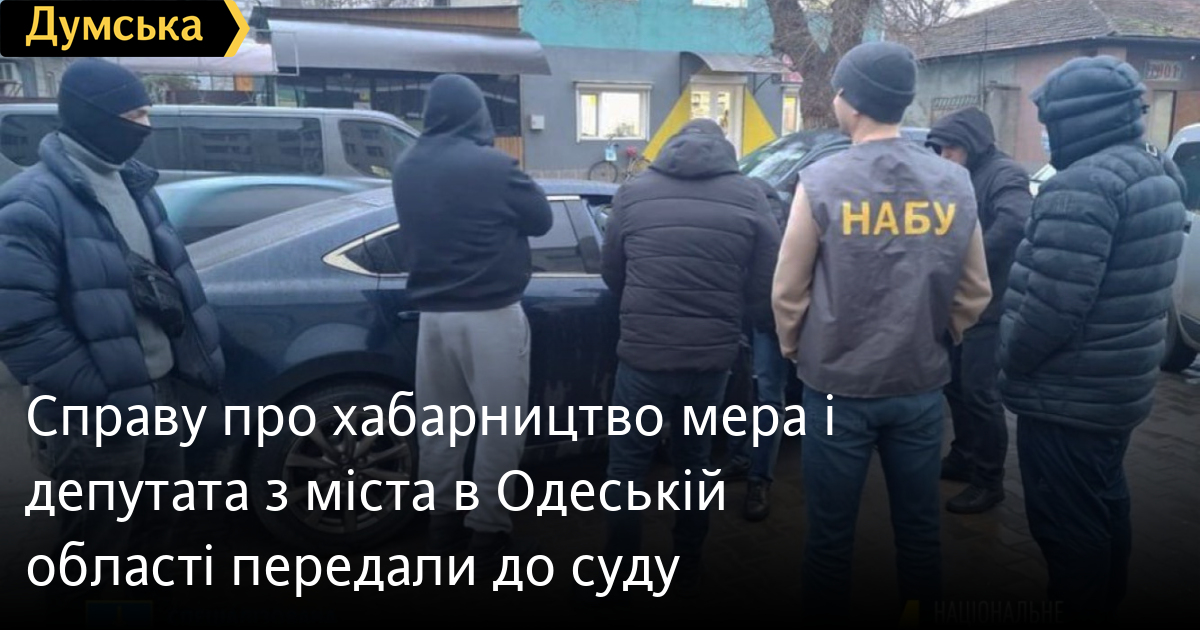 Справу про хабарництво мера і депутата з міста в Одеській області передали до судуСлідчі НАБУ скерували до суду обвинувальний акт щодо мера Рені Ігоря Плехова та депутата міськради Івана Подойлова. У відомстві повідомили, що їхню справу розглядатимуть за ч. 4 ст. 368 Кримінального кодексу України (одержання неправомірної вигоди службовою особою). За даними слідства, фігуранти вимагали у бізнесмена 100 тисяч доларів за «сприяння» при виділенні в оренду 2,5 га землі. 24 січня мера і депутата затримали під час отримання першого траншу хабара в розмірі 50 тис. дол. СМЕРТЬ РОСІЙСЬКИМ ОКУПАНТАМ! Помітили помилку? Виділяйте слова з помилкою та натискайте control-enter Новини по цій темі: 15 липня 2025: Вимагала 400 євро за підробку документів для пенсії: в Одеській області чиновниця попалася на хабарі (фото, відео) 27 червня 2025: За 40 тис. грн хотів купити секретні розробки: в Одесі затримали співробітника приватної фірми 6 червня 2025: Вимагав три тисячі доларів за довідку про інвалідність: в Одесі затримали головлікаря лікарні (фото) 8 травня 2025: Обіцяли оформити програмістом в комунальне підприємство: в Одеській області викрили схему ухилення від армії |