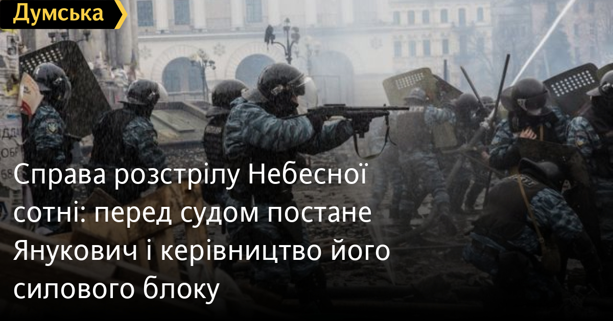 Слідство скерувало до суду обвинувальні акти стосовно організаторів кривавої спроби придушення мирних акцій протесту учасників «Євромайдану» в Києві 18-20 лютого 2014 року, внаслідок чого загинуло 67 цивільних, постраждало 887 осіб, зокрема 132 працівники правоохоронних органів.