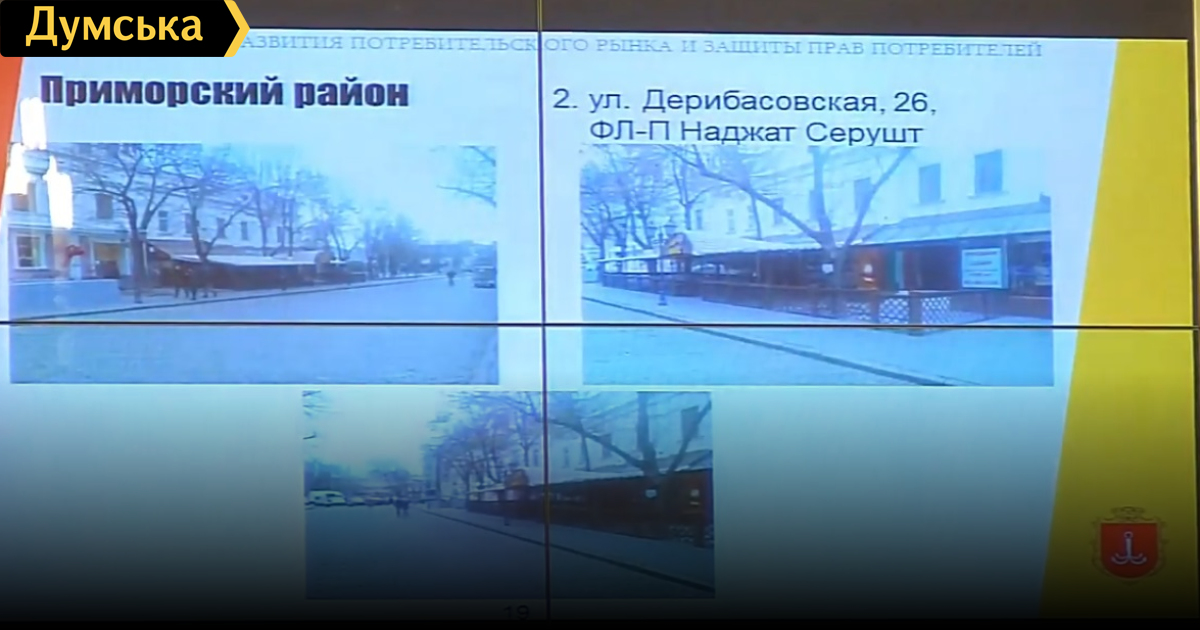 Мэр Одессы Геннадий Труханов уточнил, что все указанные в решении торговые точки не имеют разрешительных документов. В список, в частности, попали торговые павильоны, расположенные у входа на рынок «Черемушки», возле Дома мебели, напротив «Привоза», навес летней площади на Дерибасовской и другие.