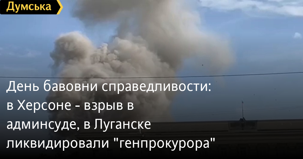 День «бавовни» справедливості: у Херсоні — вибух у «адмінсуді», в Луганську ліквідували «генпрокурора» (відео)Вибухи пролунали біля та в адмінбудівлях окупаційної влади в Херсоні та Луганську. Про це повідомляють місцеві медіа та російські пропагандисти. В Херсоні вибух стався в будівлі Апеляційного суду. Це в центрі міста — за будівлею облдержадміністрації, заявив депутат облради Сергій Хлань. «Там перебувало керівництво – Єлісєєв і все «правительство«, – розповів він в коментарі Суспільному. Пропагандистські ЗМІ пишуть про влучання п’яти ракет, є загиблі та поранені. Згодом «приліт» у будівлю обладмінстрації підтвердили й росіяни. Заступник голови окупаційної влади Кирило Стремусов, який запевнює, що удар припав на його кабінет, судячи з усього, залишився живим. Жодних офіційних заяв українські військові поки не робили. Майже одночасно пролунав вибух і в будівлі «генпрокуратури» терористичної лнр в Луганську. Пропагандисти повідомляють, що так званий «генпрокурор» Сергій Горенко та його заступниця Катерина Стегленко загинули. СМЕРТЬ РОСІЙСЬКИМ ОКУПАНТАМ! Помітили помилку? Виділяйте слова з помилкою та натискайте control-enter |