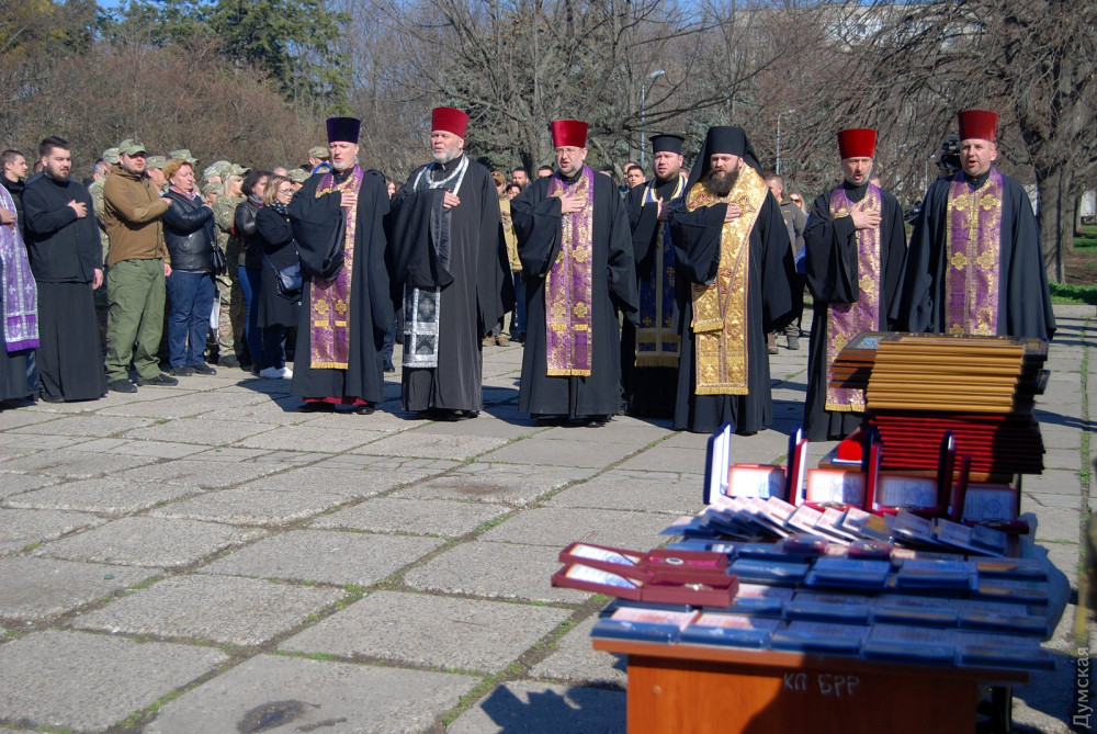 Официальная часть включала минуту молчания, исполнение гимна, вручение грамот и памятных наград. Епископ Православной церкви Украины отец Павел торжественно вручил благодарственные грамоты представителям добровольческих подразделений — батальона «Шторм», Добровольческого украинского корпуса «Правый сектор», 18-го батальона территориальной обороны, батальона «Айдар», батальона «Аррата», — а также Одесского филиала Украинского института национальной памяти.
