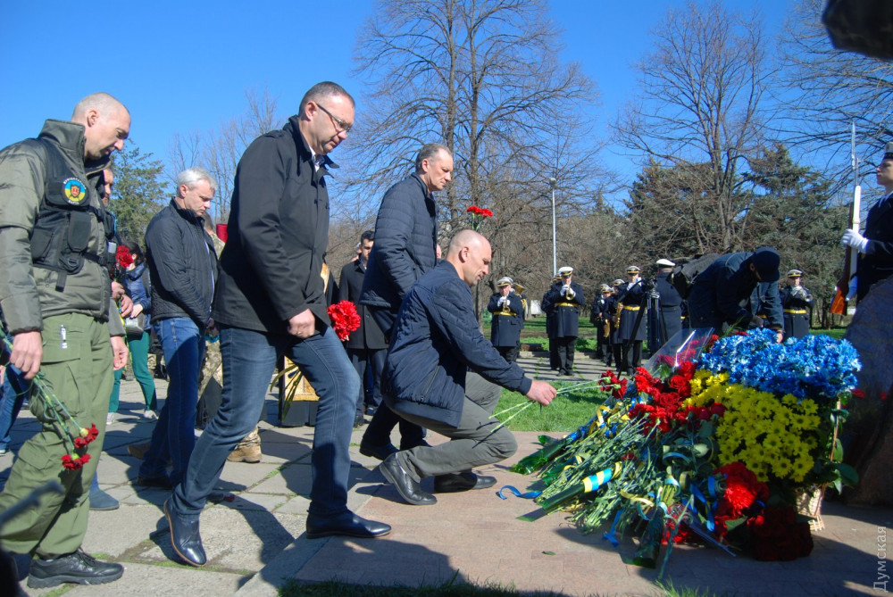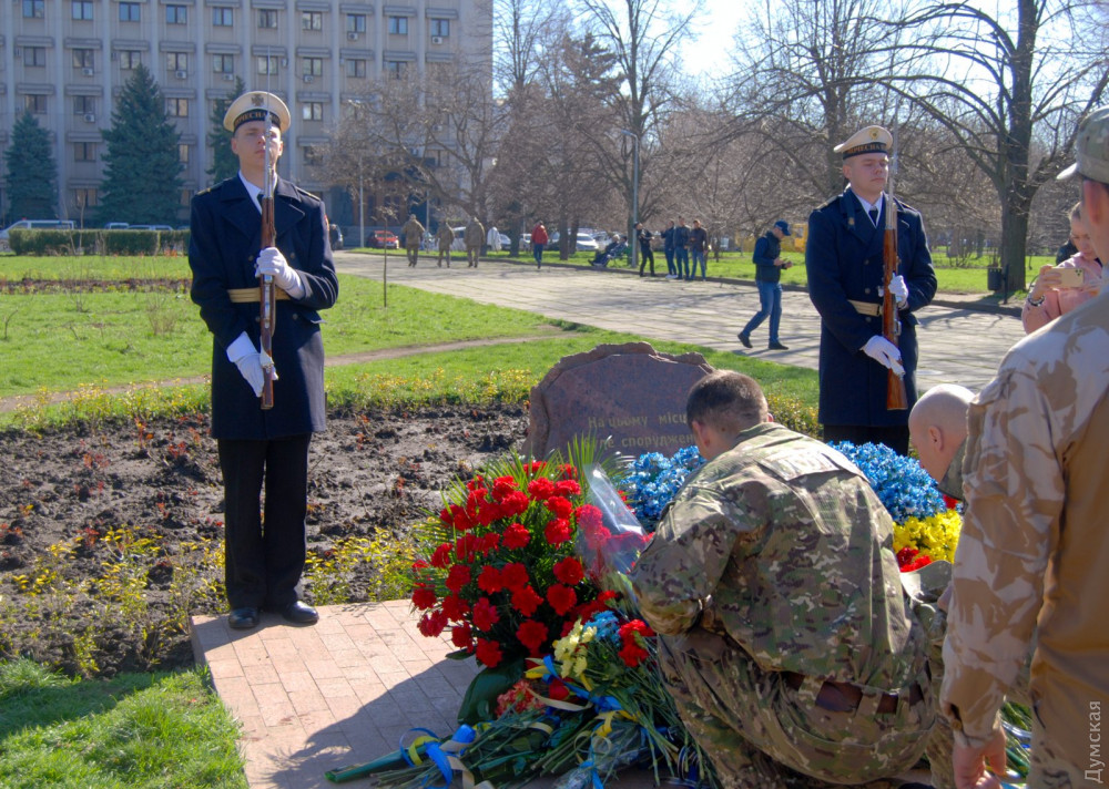 В Одессе празднование началось с возложения цветов к памятному знаку в сквере Небесной Сотни. В нем приняли участие представители армейского командования, городской и областной власти. Впрочем, это традиционное мероприятие не превратилось в сухую «казенщину» — возле здания областной администрации встретились боевые побратимы, добровольцы-участники АТО, волонтеры — все, кто считает этот день своим праздником.