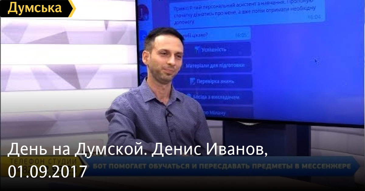 Думская ТВ. День на Думской: День на Думской. Юрий Черножук, 1.10.2021 - 1 октября 2021 День на Думской. Юлия Никандрова, 1.10.2021 - 1 октября 2021 День на Думской. Максим Шевченко, 1.10.2021 - 1 октября 2021 День на Думской. Олег Рубель, 1.10.2021 - 1 октября 2021 День на Думской. Александр Остапенко, 1.10.2021 - 1 октября 2021 День на Думской. Юрий Звелиндовский, 1.10.2021 - 1 октября 2021 День на Думской. Ирина Кедик, 30.09.2021 - 30 сентября 2021 День на Думской. Алексей Кисловский, 30.09.2021 - 30 сентября 2021 День на Думской. Жанна Шахрова, 30.09.2021 - 30 сентября 2021 День на Думской. Вадим Денисенко, 30.09.2021 - 30 сентября 2021