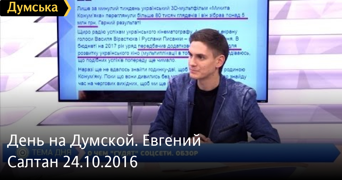 Думская ТВ. День на Думской: День на Думской. Юрий Черножук, 1.10.2021 - 1 октября 2021 День на Думской. Юлия Никандрова, 1.10.2021 - 1 октября 2021 День на Думской. Максим Шевченко, 1.10.2021 - 1 октября 2021 День на Думской. Олег Рубель, 1.10.2021 - 1 октября 2021 День на Думской. Александр Остапенко, 1.10.2021 - 1 октября 2021 День на Думской. Юрий Звелиндовский, 1.10.2021 - 1 октября 2021 День на Думской. Ирина Кедик, 30.09.2021 - 30 сентября 2021 День на Думской. Алексей Кисловский, 30.09.2021 - 30 сентября 2021 День на Думской. Жанна Шахрова, 30.09.2021 - 30 сентября 2021 День на Думской. Вадим Денисенко, 30.09.2021 - 30 сентября 2021