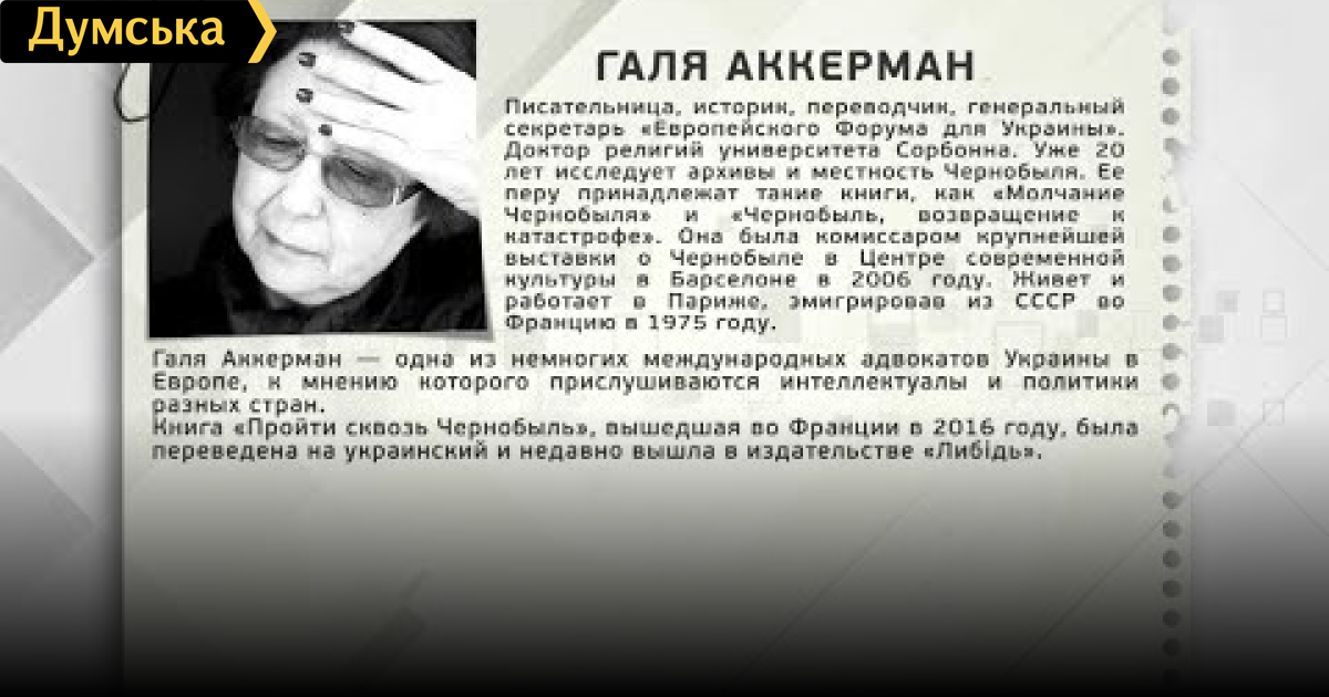 ТЕМА: ПРОЙТИ СКВОЗЬ ЧЕРНОБЫЛЬ. ПРЕЗЕНТАЦИЯ КНИГИ ГАЛИНЫ АККЕРМАН