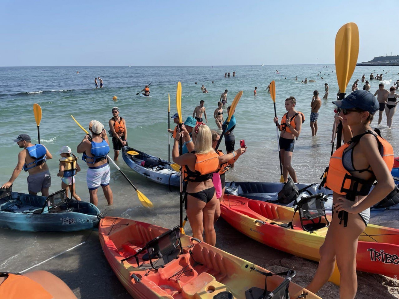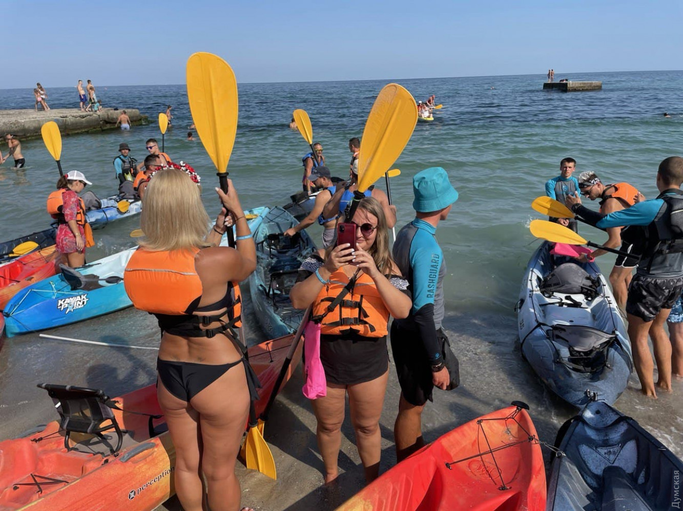 Герб Украины изобразили сегодня одесские каякеры в море на 14-й станции Большого Фонтана в Одессе. Тризуб сформировало тридцать лодок — по числу лет восстановленной независимости, передает корреспондент «Думской». Инициировал акцию волонтер и организатор каякинг-клуба Александр Кушнир. Идея возникла спонтанно — вчера в честь Дня государственного флага активисты растянули в море сине-желтый прапор, а вот сегодня у них получился тризуб. Чтобы воплотить идею, Кушнир кинул клич в соцсетях — и на пляже собралось достаточно людей с лодками, чтобы вместе выйти в море и сделать герб. Все были в спасательных жилетах и прошли первоначальный инструктаж. А что получилось — смотрите фото и видео. СМЕРТЬ РОСІЙСЬКИМ ОКУПАНТАМ! Помітили помилку? Виділяйте слова з помилкою та натискайте control-enter |