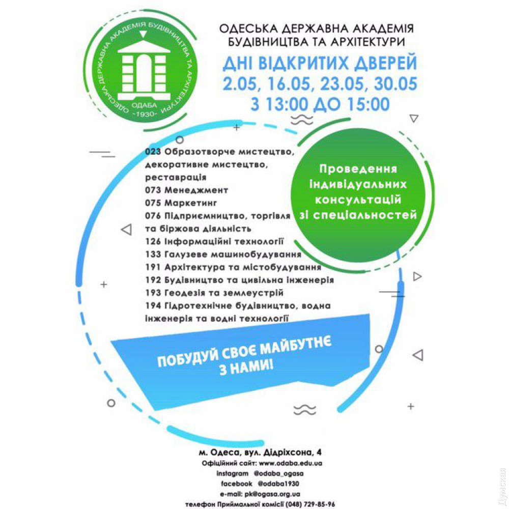 Одесская государственная академия строительства и архитектуры зовет на дни открытых дверей.