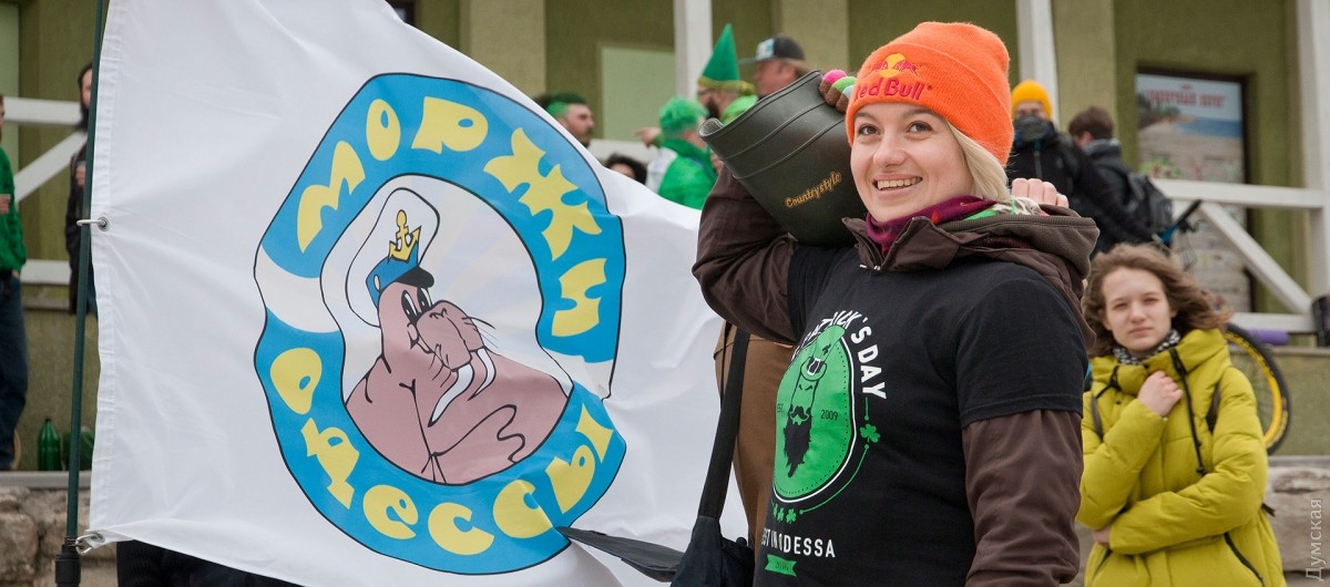 В этот раз к одесским «ирландцам» присоединились одесские моржи. По задумке организаторов, они должны были встретить в волнах Черного моря самого Патрика, решившего пристать к нашему берегу. К сожалению, как писалось выше, погода не позволила в полной мере воплотить задумку, однако желающие все-таки искупались.