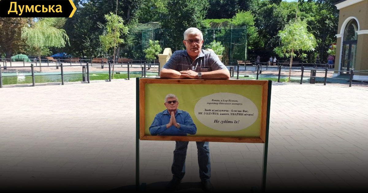«Думская» решила не просто провести день в зоопарке, а внедриться в ряды его сотрудников. Читайте в нашем репортаже о том, как ваш корреспондент купал слона, ловил сбежавшего оленя и делал уборку у крокодила. Теплое августовское утро, потихоньку просыпается парк «Преображенский», зелеными аллеями которого мы направляемся прямо к новому входу в зоопарк. В зверинце тоже еще не все проснулись – открывается окошко кассы, выходит ко входу тетенька-билетер, волоча за собой стул, зевая прохаживается туда-сюда охранник. А вот и первые посетители! Женщина с ребенком интересуются у кассы, предусмотрены ли льготы для многодетных семей. Услышав утвердительный ответ, женщина берет билеты и со словами: «Пошли смотреть на зверят!» ведет малыша в зоопарк. На входе нас уже ждет директор зоопарка — Игорь Беляков. Присаживаемся на одну из скамеек и руководитель рассказывает о планах на будущее. За восемь лет, что Беляков занимает эту должность, в зверинце многое изменилось, но планов по-прежнему хоть отбавляй. «Когда я только пришел на должность, я решил первым делом пройтись по самым болевым точкам и переселить волков, тигров и медведей. Сейчас на очереди львы и леопарды, им тоже очень тесно. Еще нам нужно делать реконструкцию слоновника. Слонихе 43 года, по человеческим меркам это как 50-летний человек. Слон — очень социальное существо, и ей очень скучно одной. Поэтому мы надеемся получить еще слона из Европы, но для этого нам нужен новый вольер, который бы соответствовал европейским стандартам содержания животных», — говорит Игорь Беляков. К 100-летию зоопарка, которое будут отмечать в следующем году, планируют завершить реконструкцию вольеров для копытных – они будут сделаны с применением наклонного насыпного рельефа. К слову и сам зоопарк, после полной реконструкции, приобретет форму трехмерного, что позволит увеличить масштаб и длину туристических маршрутов. Кроме того, этот подход позволит придерживаться принципа неприкосновенности культурного слоя, ведь всем известно, что зоопарк располагается на месте бывшего кладбища. «Когда реализуется проект, это будет самый красивый зоопарк в Украине!» — мечтательно говорит директор. Беседа — это хорошо, но пора и за работу браться. Первыми, кому пригодится наша помощь, будут лапундеры – это средней величины обезьяны, которых еще называют свинохвостыми макаками. Они в зоопарке новенькие – приехали сюда из Харькова всего два месяца назад и потому еще немного напуганы. Наша задача – накормить животных и убрать в их жилище – макаки любят порядок. Завтракают лапундеры не в открытом вольере, а в зимнике. Несем туда две большие миски с угощениями – бутерброды с джемом, вареная говядина, печенье, кукуруза с семечками и много фруктов. Оставляем кормушки, выходим и вооружившись камерой, ждем появления голодных макак через крохотное окошко. Но лапундеры оказались очень стеснительными – увидев постороннего, они вернулись в открытый вольер, скучковались и еще долго не слазили с ветки, подозрительно осматривая всех двуногих. «Детки, идите кушать! Ну же!» — без устали повторяла кипер (так нынче принято называть зоопарковых смотрителей). Но «детки» соизволили трапезничать лишь после того, как убедились, что опасность окончательно миновала – когда мы ушли. Кстати, сотрудники зоопарка очень строго следят з