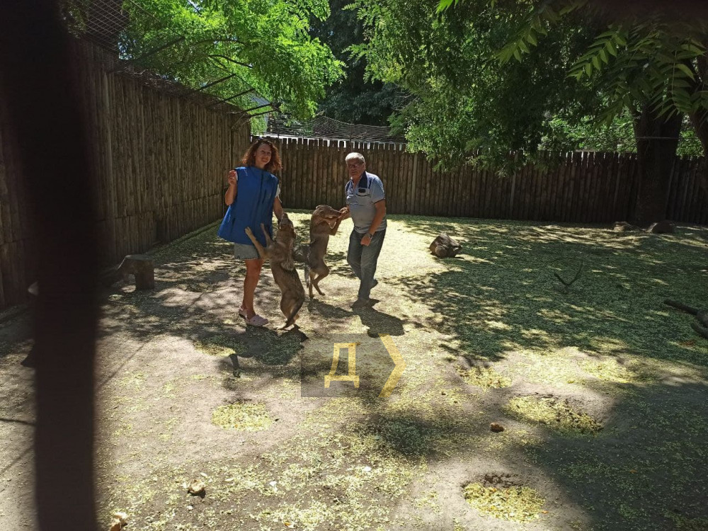 Снять стресс после ухаживания за крокодилом нам предложили в вольере благородных оленей. Вместе с кипером мы нарвали веточек ивы, это любимое лакомство оленей. Увидев букет с зелеными листиками, олени взбудоражились и столпились у калитки. Тут и случилось непредвиденное! Когда мы пытались войти в вольер, одно из животных, к счастью, это оказалась миниатюрная самка, вырвалось на волю. Она, впрочем, далеко не убежала, и поспешившие на выручку сотрудники зверинца, встав в кольцо, быстро вернули оленя к своим сородичам. Второй раз рисковать мы не стали и покормили оленей через забор. Такой форс-мажор, позднее признался нам смотритель, в зоопарке случился впервые.