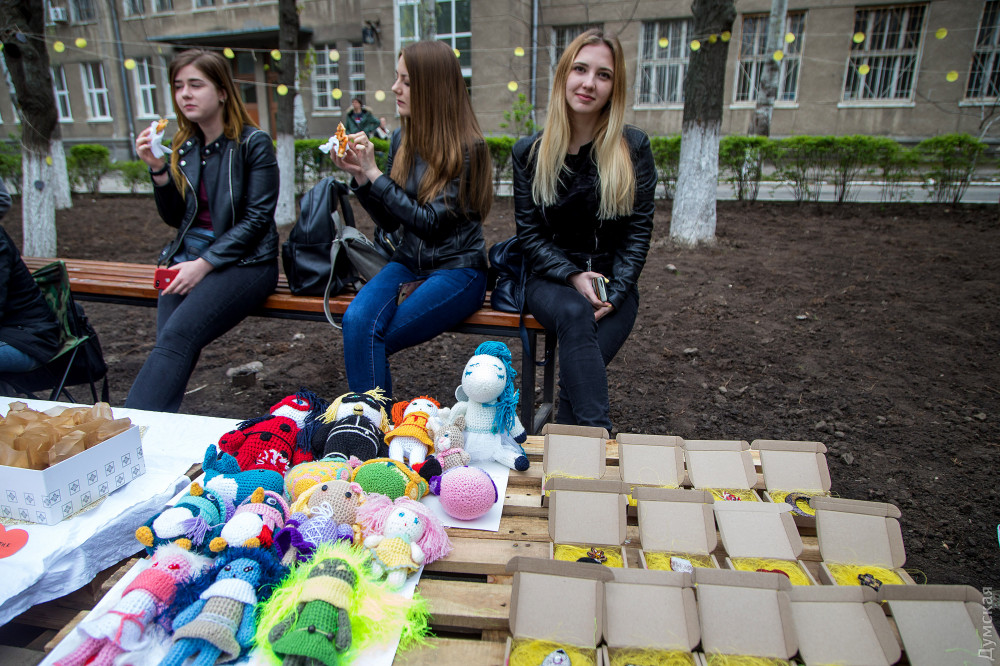 Вокруг фонтана разбита ярмарка — с домашней выпечкой и хенд-мейдом. Как рассказала глава студенческого профкома Елизавета Гайошко, в этом году День здоровья объединили с благотворительной акцией.