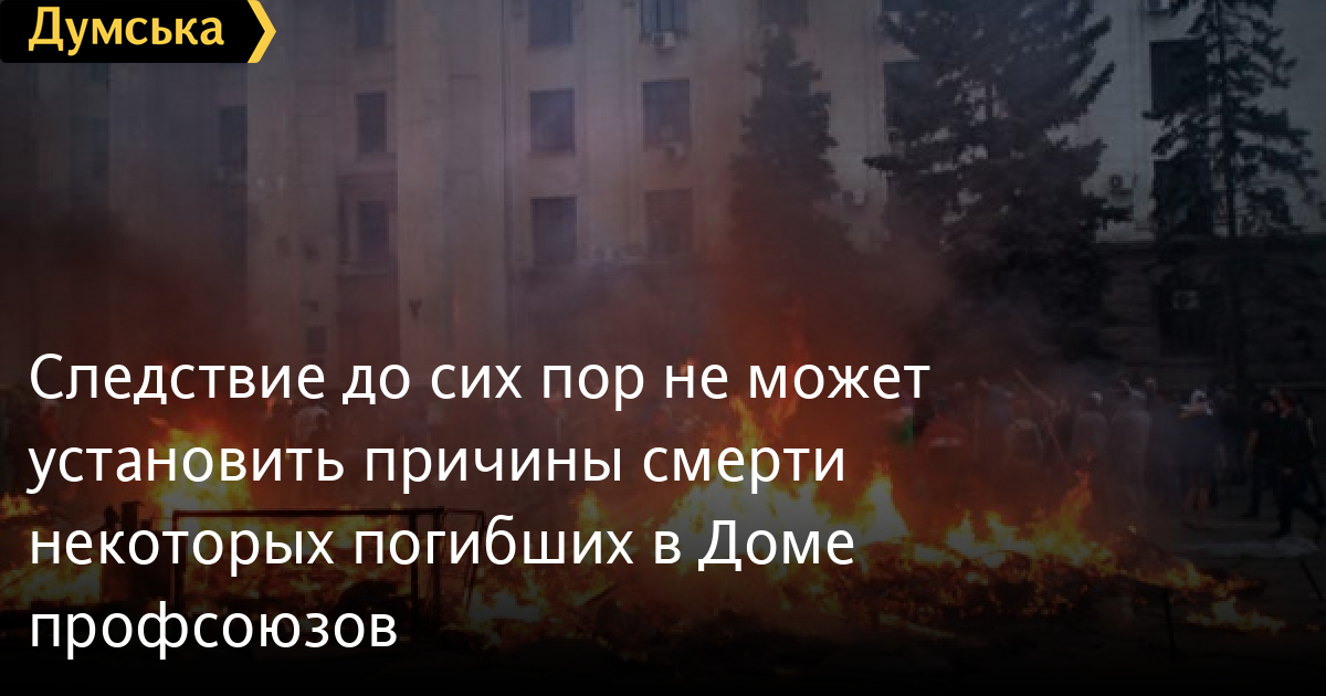«следствие затруднено — в первую очередь из-за того, что причины смерти многих пострадавших в Доме Профсоюзов следствие до сих пор установить не может.» -ага, Киев не даёт добро. Парубий проконтролировал, а потом отрапортовал «хозяевам»