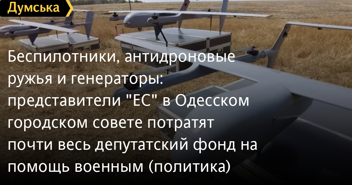Безпілотники, антидронові рушниці та генератори: представники «ЄС» в Одеській міській раді витратять майже весь депутатський фонд на допомогу військовим (політика)Майже 24 мільйони гривень (більшу частину свого депутатського фонду) виділяє фракція «Європейська Солідарність» в Одеській міськраді на потреби військових. За зміни до цільової програми сприяння розвитку підрозділів територіальної оборони та добровольчих формувань проголосували депутати міської ради, передає кореспондент «Думської». Загалом у 2023 році різним відомствам Сил оборони України в рамках програми буде надано допомогу на суму трохи більше ніж 157 мільйонів гривень. «Цього року депутатам міськради повернули депутатські фонди, по 3 мільйони гривень на людину, які ми можемо особисто спрямувати на будь-які витрати, які проводить міськрада. Зазвичай гроші йшли на якісь невеликі ремонти в будинках — нові вікна біля парадних, дитячі майданчики та інше. Але цього року наша фракція (десять депутатів) вирішила більшу частину грошей спрямувати на допомогу військовим. Не часто є можливість натисканням кнопки для голосування зберегти чиєсь життя і наблизити Перемогу. Зараз саме цей випадок», — повідомив депутат міськради Петро Обухов. На виділені кошти буде придбано: дрон H10 Poseidon MKIII VTOL UAS за 7 млн грн (БПЛА коштує 14 млн, другу половину суми дає «Фонд Порошенка»), два безпілотні авіаційні комплекси Windhover, десять антидронових рушниць Kvertus Antidron KVS G-6+, а також генератори, тепловізори тощо. СМЕРТЬ РОСІЙСЬКИМ ОКУПАНТАМ! Помітили помилку? Виділяйте слова з помилкою та натискайте control-enter |