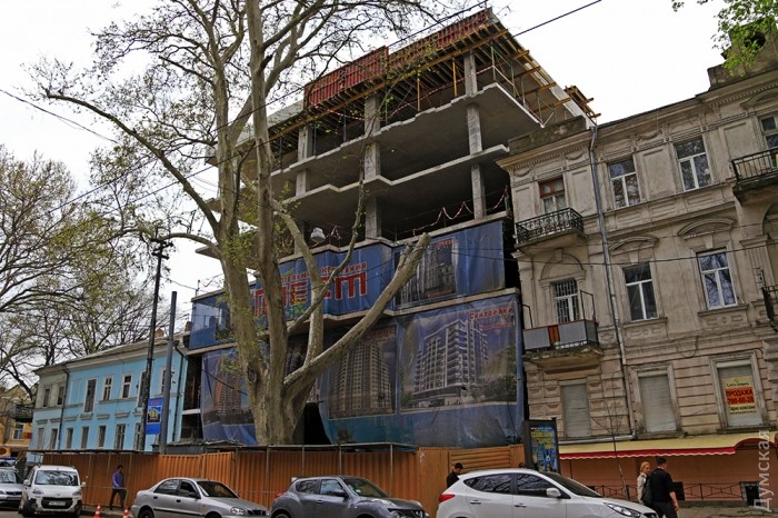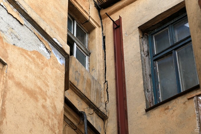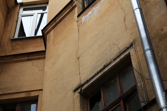 Думская уже не раз писала о незаконной стройке компании «Гефест» в самом центре Одессы — на Пушкинской, 48. Почти десятилетие назад (в 2008 году) заказчик ООО «Атлант» и застройщик «Гефест» получили разрешение на возведение здесь трехэтажного дома с мансардой. В настоящий момент построено уже шесть этажей. Но это далеко не единственная проблема. Строительство многоэтажки по соседству с домами конца девятнадцатого века приводит к их разрушению. Так, дом №46 по улице Пушкинской, который к тому же является памятником архитектуры местного значения, трещит по швам. Жильцы бьют тревогу, они считают, что заниматься укреплением их дома должен виновник всех бед. Но обо всем по порядку