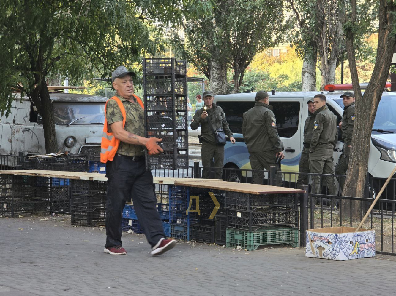 Десант двірників та муніципалів: на одеських Черемушках ліквідували стихійний ринокСтихійний ринок на вулиці Філатова, 86, який вже неодноразово розганяли, в черговий раз ліквідували вранці 2 вересня співробітники ЖКС. Демонтаж лотків відбувся під наглядом бійців «Муніципальної варти» та співробітників поліції, передає наш кореспондент. Ранок Дня міста на Філатова, 86 видався бадьорим. Тут висадився зведений десант з бійців «Муніципальної варти», покликаних забезпечити силове прикриття в разі опору торговців, і співробітників ЖКС «Черемушки», які, власне, і повинні були здійснити демонтаж торгових лотків. Також в операції брав участь самоскид КП «Міські дороги». До слова, торговців на місці дивним чином не виявилося, мабуть, їх попередили напередодні ввечері і виходити на роботу вони не стали, тому ліквідація ринку пройшла без сучка, без задирки. «Отримав незліченну кількість скарг від місцевих жителів з приводу цієї ситуації. Фактично зайнятий тротуар, ні пройти, ні проїхати, сморід, антисанітарія, все нелегально, ніяких відрахувань до бюджету. Якщо раніше тут торгували бабусі і дідусі тим, що виростили у себе на городі, то тепер їх витіснили професійні торговці, які живуть з перепродажу. Тому на нараді під керівництвом першого віце-мера прийняли рішення про ліквідацію стихійного ринку», — розповів депутат міськради Олег Звягін. Він додав, що найближчим часом КУ СМЕП встановить знак «Паркування заборонено» вздовж дороги, що дозволить евакуювати припарковані тут бусики, де торговці зберігають свій товар. СМЕРТЬ РОСІЙСЬКИМ ОКУПАНТАМ! Помітили помилку? Виділяйте слова з помилкою та натискайте control-enter