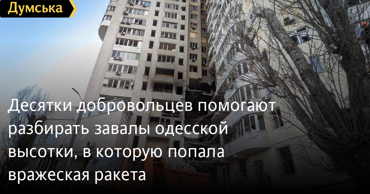 Расчистка завалов в ЖК «Тирас», в который 23 апреля ударила вражеская ракета, продолжается. Сегодня разбирать завалы помогали не менее 20 добровольцев.