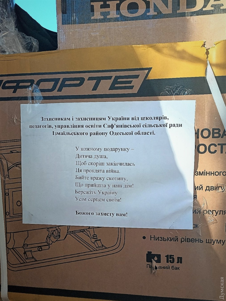 Діти передали їм патріотичні малюнки, а дорослі – їжу, пічки, сокири та бензопили, інструменти, генератори та інші корисні речі.