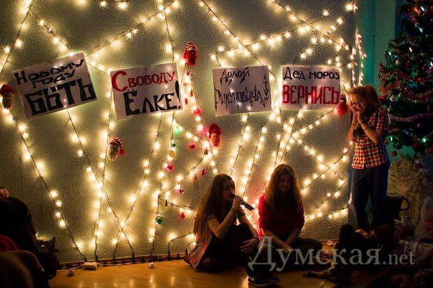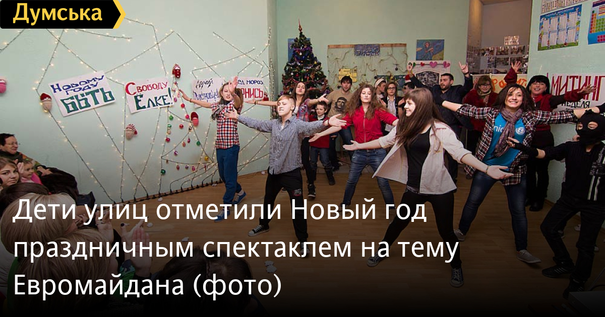 Воспитанники благотворительного фонда «Дорога к Дому», который уже более 15 лет спасает детей, оказавшихся на улице, провели праздничный предновогодний концерт. Сложная политическая ситуация сказалась, даже на таком аполитичном коллективе, и темой праздничного концерта стал Евромайдан. Небольшой спектакль, показанный родным и гостям, пришедшим отпраздновать Новый год с благотворительным центром, закончился позитивно. После вмешательства Деда Мороза, наступление Нового года, которому пытался помешать «Беркут», состоялось.