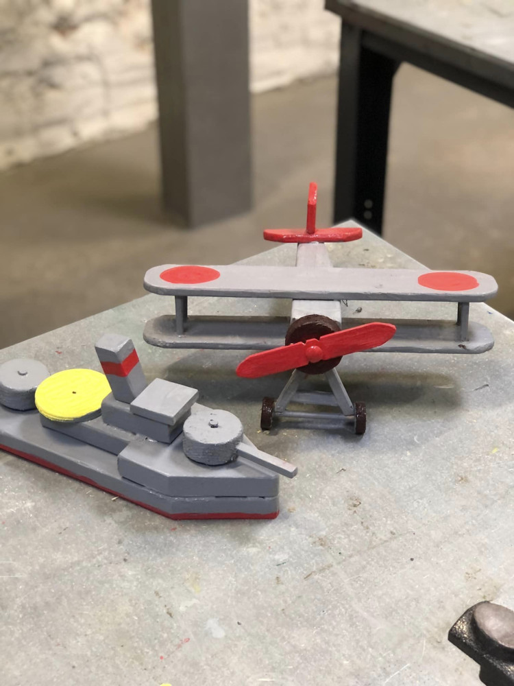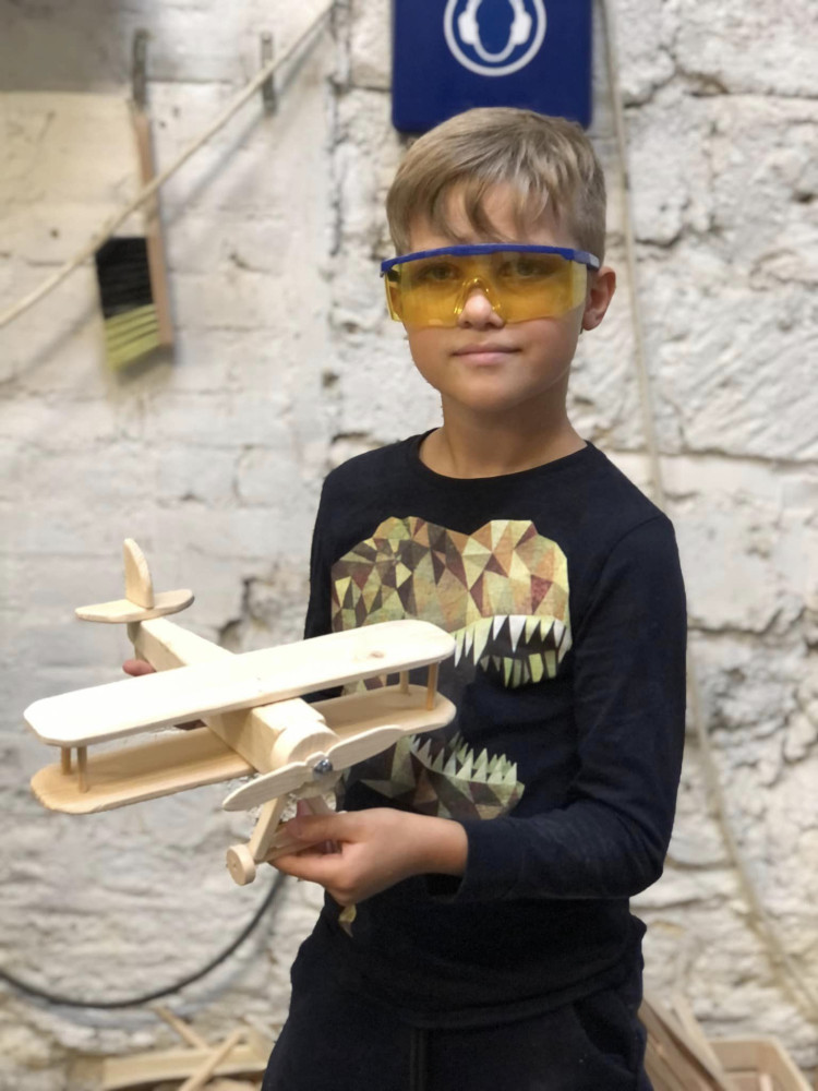 Так у майстерні почали робити військові кораблі, літаки та танки. У найближчих планах майстрів – лицарський меч із щитом та арбалет. Також організатори планують створювати готові набори деталей, які діти зможуть склеїти та пофарбувати, а також із деталей, які за наявності вдома спеціальних інструментів, можна обробити самим.