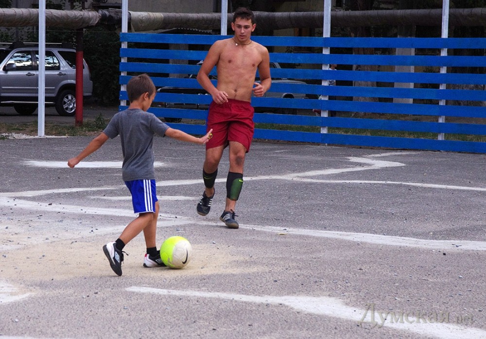 Детишки играют в футбол Чем не тема для фоторепортажа? Не все ж политиков фоткать! Тем более, что, судя по всему, именно в окрестностях школы №28, что на улице Академика Филатова, подрастает будущее нашего спорта. Обратите внимание на состав противоборствующих команд. Уже начавшим бриться юношам бросили вызов десятилетние мальки. Младшее поколение дышит рослым соперникам в пупок, но, что характерно, футбольное сражение идет на равных. Играют пацаны бесстрашно, по-дворовому, рассекая в кедах по асфальту. Каждый гол вызывает такую бурю эмоций, что куда там матчам премьер-лиги! Да, забор, который ставят вокруг школьного поля — не строительный, а чтобы мяч не вылетал. Фото Алексея Кравцова СМЕРТЬ РОСІЙСЬКИМ ОКУПАНТАМ! Помітили помилку? Виділяйте слова з помилкою та натискайте control-enter |