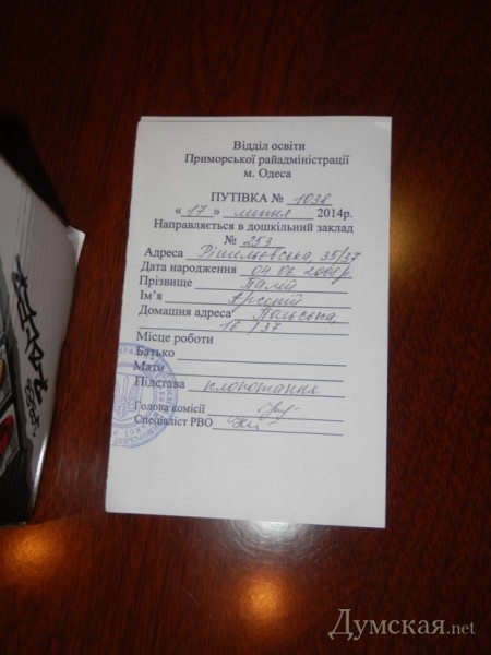 В Одессе пытаются помогать в решении проблем беженцев из Донецкой и Луганской областей, прежде всего детей. Так, сегодня в Приморской райадминистрации многодетная семья из Макеевки получила путевки в детский садик.