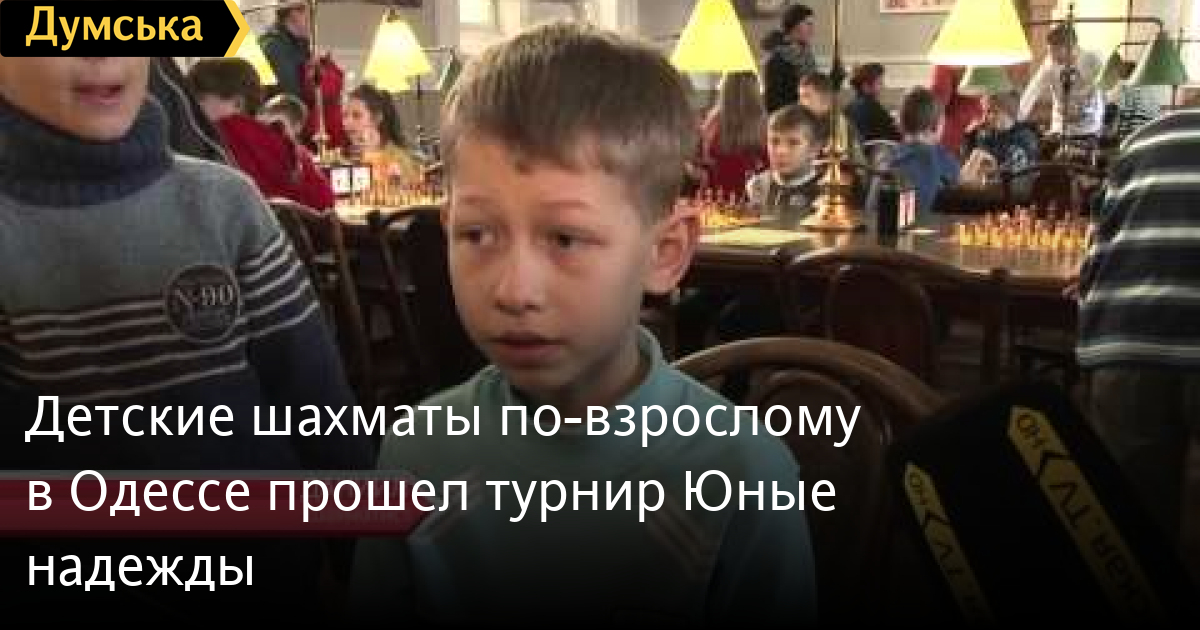 Детские шахматы по-взрослому – в Одессе прошел турнир «Юные надежды». Ребята соревновались в логических способностях и умении ставить мат противнику. Играли как опытные шахматисты, так и новички. Ольга Китик продолжит. СМЕРТЬ РОССИЙСКИМ ОККУПАНТАМ! Заметили ошибку? Выделяйте слова с ошибкой и нажимайте control-enter Думская ТВ. Сюжеты: