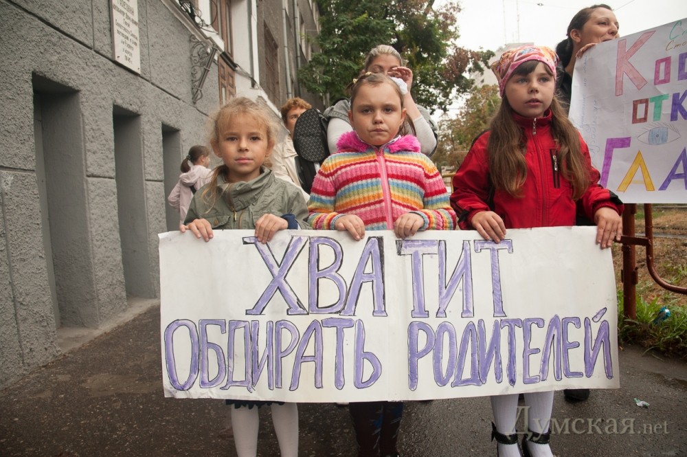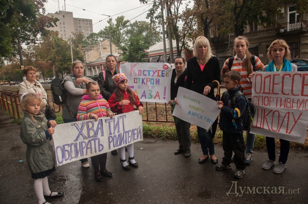 Детский протест: взбунтовавшиеся ученики одесской школы все-таки вышли на митингУченики провели акцию протеста у здания 59-ой школы олимпийского резерва, что на Канатной улице. Как передает корреспондент «Думской», у входа в учреждение собралось около полусотни школьников, их родителей и выпускников. Они требовали вернуть на должность директора школы Раису Олийнык, проработавшую здесь 30 лет, а также призывали власти обратить внимание на действия нового руководителя Анны Чернухиной, которая «не умеет работать с детьми и первым делом начала вымогать деньги у родителей». При этом пропускной режим в школе во время митинга был ограничен – некоторые ученики, которым не удалось выйти на улицу, показывали плакаты через окна.