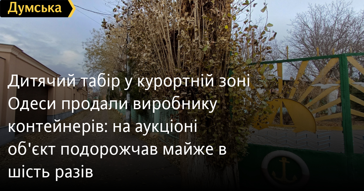 Дитячий табір у курортній зоні Одеси продали виробнику контейнерів: на аукціоні об'єкт подорожчав майже в шість разівДитячий оздоровчий центр «Юний судноремонтник», розташований в Одесі на вулиці Костанді, продали за 84 млн грн при стартовій ціні 14,2 млн грн. Як передає кореспондент «Думської», переможцем електронного аукціону, організованого Фондом держмайна, стала компанія «Укрремконтейнерсервіс». Вона займається в основному виробництвом і продажем морських контейнерів, але проводить і операції з нерухомістю. Директор і бенефіціар фірми — Володимир Пономаренко. Крім неї, в аукціоні брало участь ще п'ять компаній. Торги пройшли в три раунди за англійською схемою (з підвищенням ставок), в результаті цінова пропозиція «Укрремконтейнерсервісу» виявилася найбільшою. До об'єкта приватизації входять будівлі та споруди загальною площею трохи більше 2 тис. кв. м, зокрема чотири спальні корпуси, їдальня, кінотеатр, медпункт, пральня, гараж, підсобки, душова, туалет, водонапірна вежа та інші приміщення. А ще – 86 одиниць рухомого майна (ліжка, кондиціонери, бойлери, дрібна кухонна техніка тощо). Під'їзд до дитячого табору заасфальтований. Ділянка огороджена. На території також є трансформаторна підстанція і кабельні лінії, які належать ДТЕК і не входять до складу об'єкта продажу. Сам центр знаходиться на балансі ДП «Одеський морський торговельний порт» і розташований на двох земельних ділянках загальною площею понад 1,3 га. В умовах продажу зазначено, що покупець придбає тільки самі будівлі, а не землю під ними. Крім того, він зобов'язаний використовувати його як дитячий оздоровчий центр. Відзначимо, що дитячий оздоровчий центр «Юний судноремонтник» відкрили при Одеському судноремонтному заводі в 1951 році. Він неодноразово визнавався кращим в організації оздоровлення та літнього відпочинку дітей. Останній раз табір приймав відпочивальників у 2019 році. У грудні 2022 року Одеська облрада звернулася до Фонду держмайна з проханням виключити центр зі списку малої приватизації, оскільки є ризик забудови території. Детальніше про це «Думська» писала тут. СМЕРТЬ РОСІЙСЬКИМ ОКУПАНТАМ! Помітили помилку? Виділяйте слова з помилкою та натискайте control-enter |